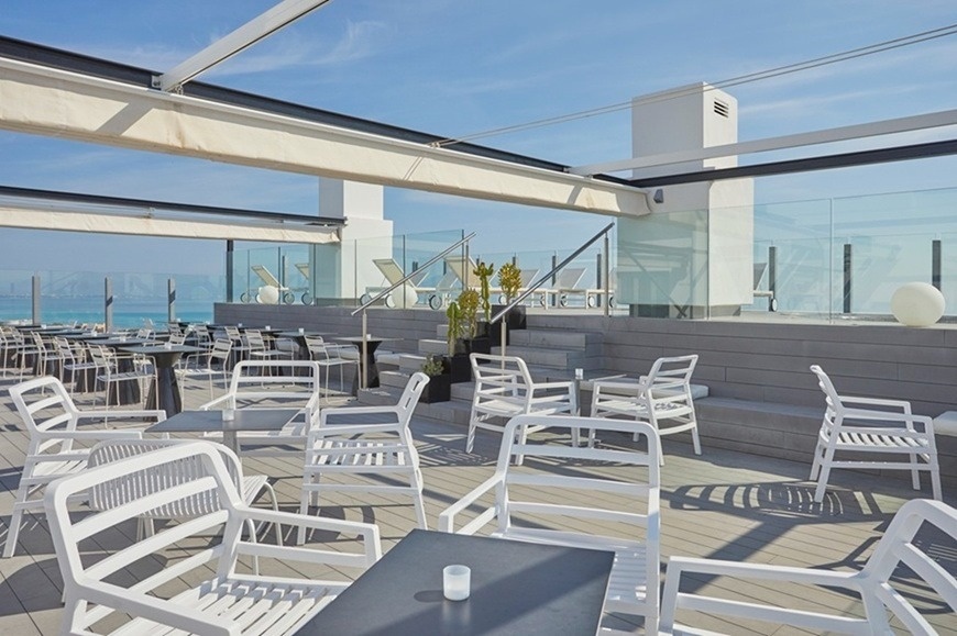 Disfrute de las mejores vistas de la Bahía de la Alcudía en lo que se toma un cocktail en el Sky Bar